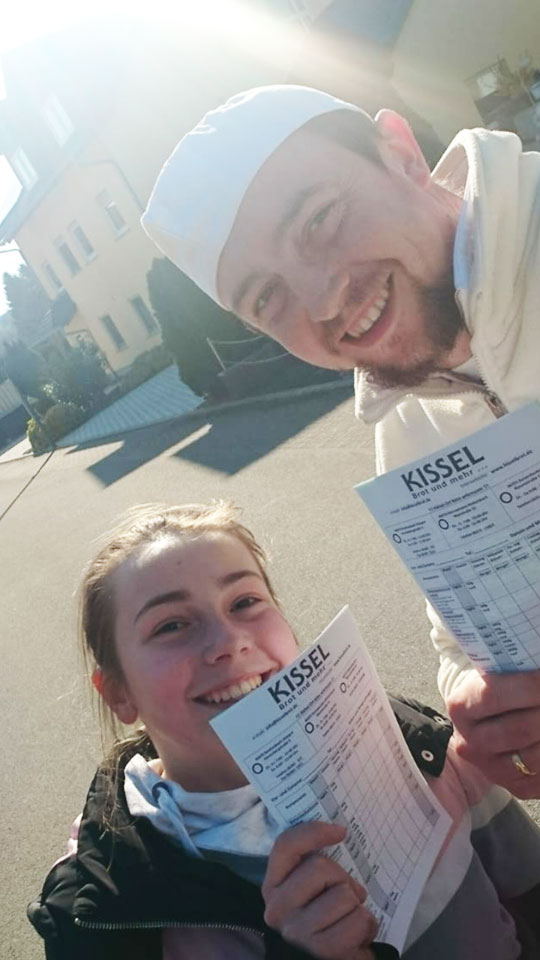Der gebotene Corona-Abstand bedeutet in diesen Tagen schon mal, dass die Kunden in einer langen Reihe auf der Straße anstehen. Um das Warten vor und den Aufenthalt im Laden zu verkürzen, hat sich die Bäckerei Kissel Brot und mehr aus dem pfälzischen Reichenbach ein Abholsystem mit Bestellformular überlegt. Das Formular gibt es auf der Internetseite oder als Flyer in einem der drei Fachgeschäfte. „Bringen Sie dem Nachbarn gleich etwas mit“, empfiehlt der Betrieb.