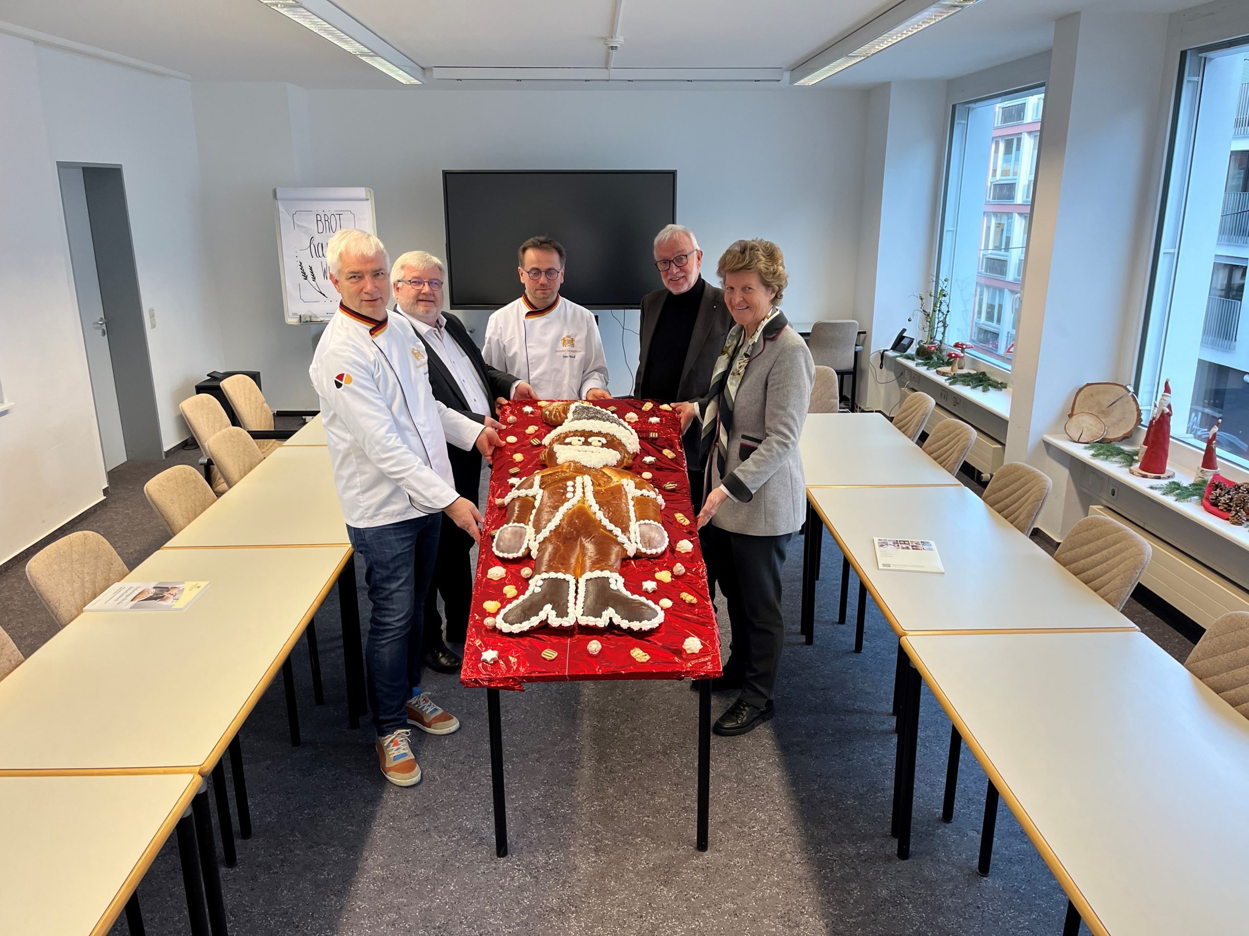 Obermeister Martin Reinhardt betonte das Engagement der beiden Geehrten: „Frau Dr. Meister-Scheufelen und Herr Munkwitz haben sich 2021 mit einem Empfehlungsbericht des Normenkontrollrats Baden-Württemberg zur Bürokratieentlastung im Bäckerhandwerk für diese Branche eingesetzt und in vielen Gesprächen herausgefiltert, welchen bürokratischen Belastungen Handwerksbäcker ausgesetzt sind. Beiden ist es zu verdanken, dass Handwerksbäcker auf der politischen Bühne gehört wurden und werden. So hat die Studie Nachwirkungen bis heute und das Thema Bürokratieabbau ist in Politik und Gesellschaft präsent.“ Dieses Engagement würdigt die Bäckerinnung mit der Verleihung des rund 1,60 Meter großen und 17 Kilogramm schweren Dambedeis.