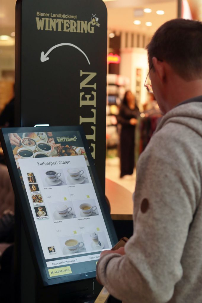 Die Bäckerei Wintering hat für eine ihrer zwei Filialen im Lingener Einkaufszentrum Lockentor SB-Terminals aufgestellt. An dem digitalen Bestelltermial können die Kunden sich durch die Speisekarte scrollen, ihre Bestellung aufgeben, bargeldlos bezahlen und am Tisch ihre Speisen serviert bekommen. Wer seine Karte nicht zur Hand hat, kann mit Bargeld an der Theke an einem Barzahlungs-Automaten bezahlen.