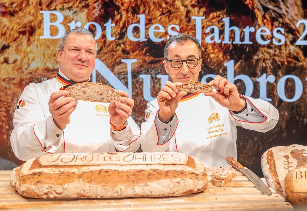 Gesund, lecker und vielseitig: Die Wahl für das Brot des Jahres 2025 ist auf das Nussbrot gefallen. Cem Özdemir, Bundesminister für Ernährung und Landwirtschaft und Bäckerpräsident Roland Ermer präsentierten es gestern im Rahmen der Grünen Woche in Berlin und schnitten es offiziell an. Es überzeuge durch ernährungsphysiologischen Mehrwert und geschmackliche Vielseitigkeit. Die deutsche Meisterin des Bäckerhandwerks Lea Wagner (rechts) gestaltete das Brot extra für den Minister, der sich darüber sichtlich freute und ein gemeinsames Foto gleich in den sozialen Medien postete.